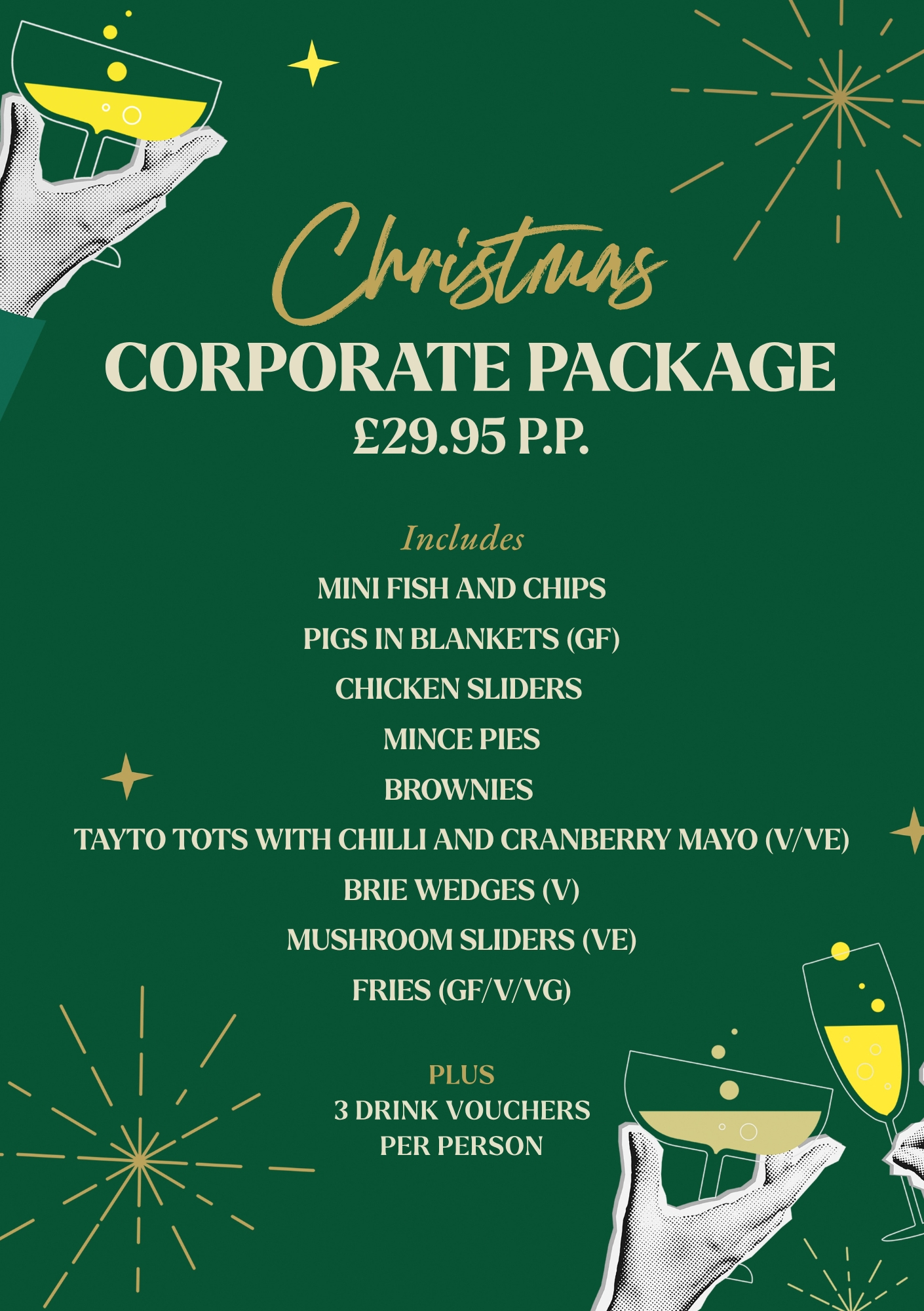 Make this year's work party one to remember with our exclusive corporate festive packages. Enjoy a seasonal buffet filled with festive favourites, paired with a selection of drinks to keep the celebrations flowing. Designed for teams of all sizes, it's the pertect way to roast tho season together.